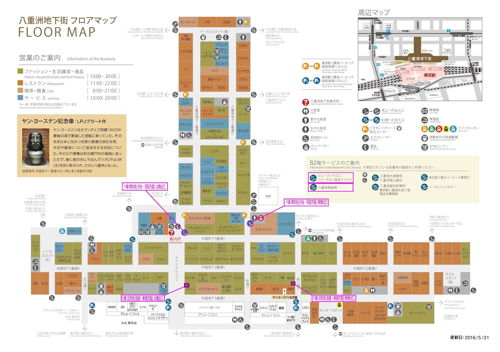 首都高八重洲線(Y)の八重洲に乗客降り場があることは知っていたが、実際その降り場より八重洲の地下街に出た時、どの扉から出ることになるか良く解らなかったので、先日降り場を利用した際に調べた。
